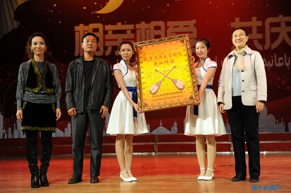 演出过程中,丁哲学副处长,何颖副校长分别代表省教厅和黑龙江大学向学员及他们远在家乡的亲人送上了古尔邦节的祝福。他们勉励大家争做疆江交流的使者和做民族团结的凝聚者。学员们也将自己亲手制作的象征民族之花永远绽放的手工礼物献给黑大,共同祈愿黑龙江大学明天更美好。