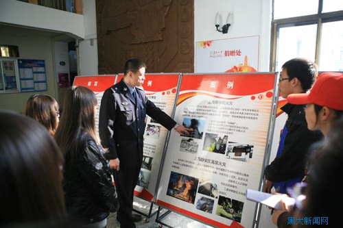 在B区篮球场进行的消防器材展吸引了大批同学驻足观看。校安全保障部防火科的老师们在现场演示了干粉灭火器、水枪、防护面具等器材的使用方法,并就如何做好防火防电、排除安全隐患,二氧化碳灭火器的基本知识及注意事项,防火设施的维护方法等向同学们作了介绍。