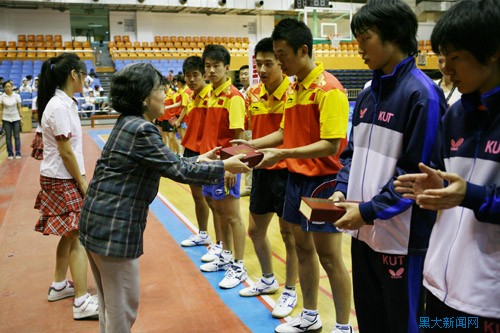 比赛一直在友好热烈的气氛中进行。最终,我校代表队获得团体男单、男双、女单、女双的冠军,日本高知工科大学获得团体男单、男双、女单、女双的亚军。我校选手高庆、吴琼,与日本高知工科大学选手武冈、松山分获最受欢迎男、女运动员称号。日本高知工科大学将带有运动员签名的校旗赠与我校,本次比赛完满落幕。
