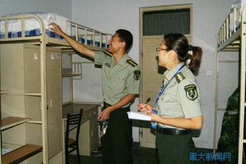 保障军训工作顺利开展,规范学生内务秩序,学校军训师政治部下设内务纪律检查组,每日对学生内务卫生情况进行抽查。