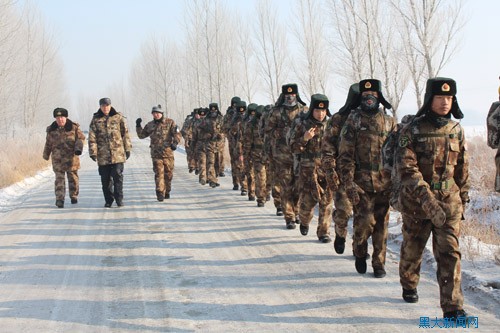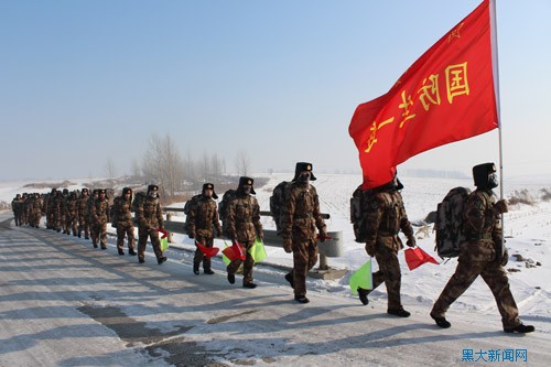 2015年寒假期间,我校国防教育学院联合驻校选培办组织学校百名国防生冒着零下30摄氏度的低温,迎风雪、斗严寒,历时四个昼夜,行程150余公里,途径13个村屯、乡社,圆满完成冬季野营拉练任务。黑龙江大学党委副书记曲科军,黑龙江省军区政治部副主任李耀双大校,黑龙江大学党委宣传部、统战部部长张学成,国防教育学院院长宋晓安、学院党总支书记金鹏以及学院教师参加了拉练。