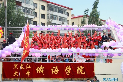 “风云际会,岁月如歌,时代尖兵,新闻传播。”新闻传播学院的同学独具创意,他们把小石子填充进废弃的易拉罐,用DIY的环保“能量棒”为运动员挥舞加油。