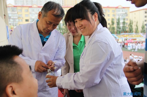 医疗值班处设在主席台旁,配有一名外科医生、一名护士和四名学生志愿者,现场备有常用药、担架、血压计、消毒水和包扎药品等。同时,校医院还成立了专门的应急小组,包括各科专业的医生、护士近10人随时待命。(责任编辑:王蕾 摄影: 王楠 张朔铭)