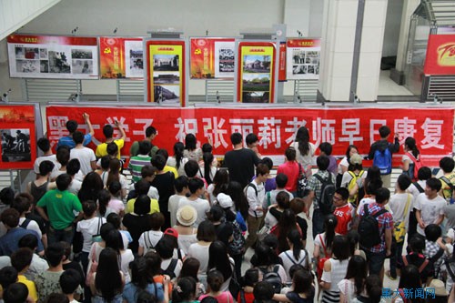 5月21日中午12时20分,在我校汇文楼一楼大厅内,由经济与工商管理学院组织的向“最美女老师”张丽莉学习签名活动正在如火如荼地进行。同学们真诚地在“黑大学子祝张丽莉老师早日康复”的条幅上签下名字,并表达了对她临危不惧、舍己救人英雄壮举的崇高敬意和向新时期青年楷模学习的坚定决心。