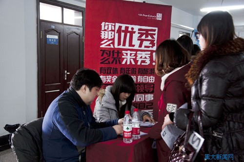 “与广告制作最唇齿相依的元素是什么?”“同学,请你告诉我什么是创意。”招聘者们正对前来应聘的学生进行简短的面试提问。这对新闻传播学院的学生来说是极为对口的一场招聘会,“与综合性招聘会不同的是面试问题不拘一格,需要极大地发挥个人创新意识”,一位09级毕业生很早就来到招聘现场,在自己心仪的广告公司前排队咨询,等待接受应聘单位的面试。