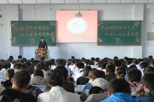 寇相军书记对六名优秀毕业生重返母校为师生们作报告表示热烈的欢迎和衷心的感谢。他说,在金秋收获的季节里,我校迎来了建校70周年校庆,这是学校总结70年来办学经验的盛典,也是全体黑大人集聚抒发母校情怀的温情时刻。学院以此为契机,特请来历届毕业生中的研究生、公务员、企事业单位员工代表返校,同庆母校盛典。