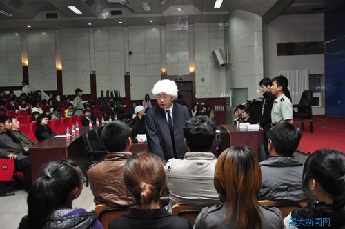 10月21日晚6点,由我校法学院举办的首届英法美系模拟刑事审判活动在我校3号楼地下报告厅举行。我校法学院部分师生与哈尔滨工业大学、哈尔滨工程大学等高校法学专业代表共同观看了本次展示。