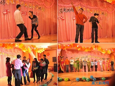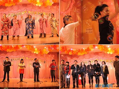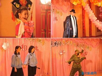 诗朗诵《腾飞中的应用外语学院》为大家讲述了学院自建院以来的辛路历程,同时也向各位老师介绍了学院多年来所获得的各项荣誉。舞台剧《现代版灰姑娘》以童话故事为题材,上演了一场改编后的公主与“乞丐王子”的爱情故事,大家幽默的语言和表演让观众捧腹大笑。随后,舞蹈《皇帝圆舞曲》让大家看到了我们学院老师的身怀绝技和深藏不漏。而服装展示《岁月如歌》更是将晚会再次推向高潮,五个时代的演绎、五个时代的变化,从清朝宫廷、到30年代上海滩,从40年代学生服到80年代冬天里的一把火再到新世纪的恋爱ING,大家的精彩表演赢得全场观众的欢呼。