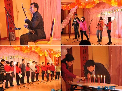 被彩色气球装饰的联欢会现场,到处都洋溢着喜庆的气氛。联欢会在开场舞《欢乐中国年》中拉开了序幕。歌曲《好运来》更是将现场的喜庆气氛带向高潮。三句半《话说我们的学院》,用幽默诙谐、简单押韵的语句将我院近年来取得的成绩以及奋发向上、激流勇进的信念表达的淋漓尽致。藏族舞蹈《格桑拉》充分展现了我院老师多才多艺的一面,街舞《Go Girl》更是动感十足,博得了现场观众的热烈掌声。