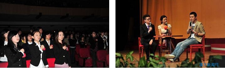 在仪式环节之后,主持人对特邀嘉宾——新闻传播学院2004级广播电视编导专业毕业学生、黑龙江电视台影视频道《非常有戏》节目的主持人徐亿非进行了现场访谈。徐亿非用切身的例子深入浅出、风趣幽默的解读了成长的三个关键词:青春、责任、感恩。青春是人生幻想的阶段,一切的成功都源于最初的向往和憧憬;责任则是说要时刻对自己负责,最后,在提到感恩时,他真诚的感谢了母校和学院的培养,也希望在场的同学们要常怀感恩之心。在他的讲述中,同学们从他对梦想的执著和努力中受益匪浅。最后,本次成人礼仪式在同学们热烈的掌声中成功落下帷幕。(新闻传播学院供稿)