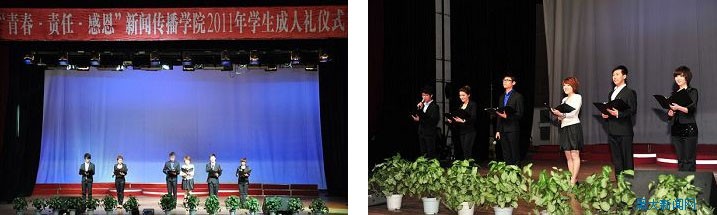 为培养青年学生勇于承担社会责任,积极履行公民义务的成人意识。2011年5月3日晚6时,“青春•责任•感恩”新闻传播学院2011年学生成人礼仪式在校音乐厅隆重举行。出席本次活动的嘉宾有:新闻传播学院院长郑亚楠、新闻传播学院党总支书记张学成、新闻传播学院部分教师以及兄弟学院的团委老师。学院全体在校学生参加了本次成人礼仪式。