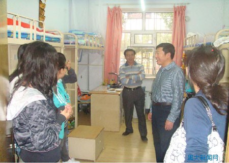 9月14日,在我校确诊甲型h1n1流感病例后,学校的防控工作也变得严峻起来,为了让同学们安心学习生活,合理科学地应对甲流,经管学院焦方义院长、常树春书记、乔榛院长、王鸷院长以及党团办的各位辅导员老师一行于下午3点深入各寝室楼,看望慰问学院的同学们。