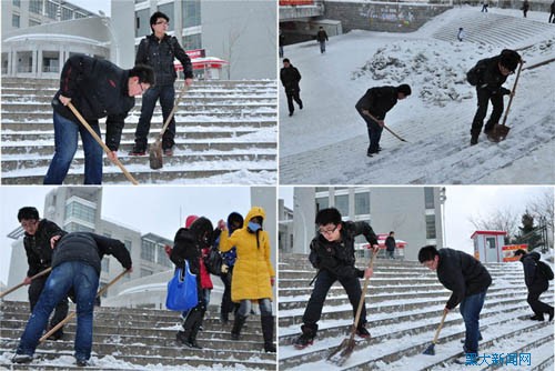 在这两位同学默默付出的背影中,冬天的寒意将很快散去,转眼又是一季春暖花开,我们坚信我校“关爱型校园”建设将必将绽放更加夺目的光辉!(摄影记者:孙基然)