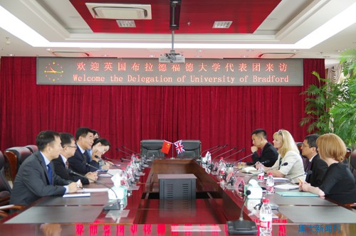会谈结束后,代表团成员与我校即将赴布拉德福德大学学习的学生举行了见面会。当天下午,我校国际文化教育学院院长张晓光,国际合作与交流处处长王国文、副处长胡晓枫,经济与工商管理学院副院长乔榛与布拉德福德大学代表团成员就两校合作办学项目协议的具体内容进行了细致的讨论。