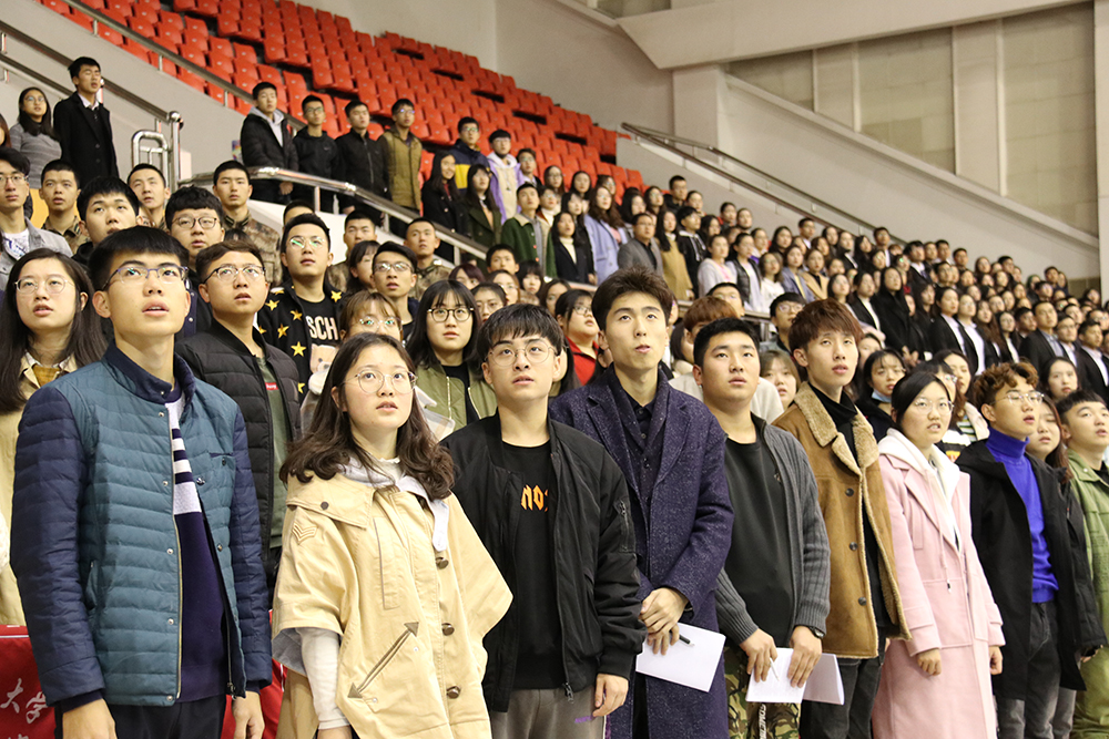 伴随着国歌响起,全体与会人员起立,合唱国歌。