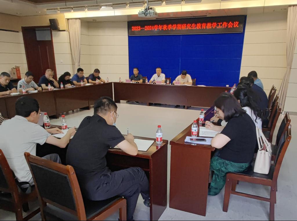 8月24日下午,我校在主楼A座226会议室召开新学期研究生教育教学工作会议,对2023年下半年研究生教育教学重点工作和学期初研究生教育教学安排进行部署。研究生院相关领导及各培养单位分管研究生工作领导参加会议,会议由研究生院副院长张龙主持。