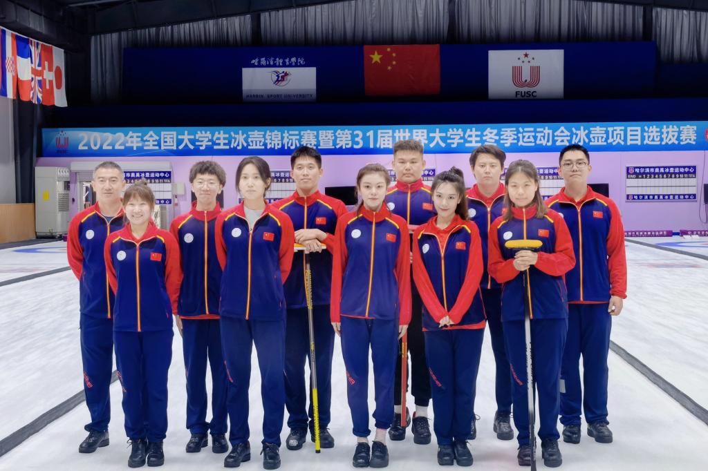 黑龙江大学冰壶队的10名运动员在历经一个月的集训后代表我校参加比赛,虽然训练时间短,但大家在赛场上运筹帷幄、勇于拼搏,以良好的形象及状态展示了黑大学子的青春风采。