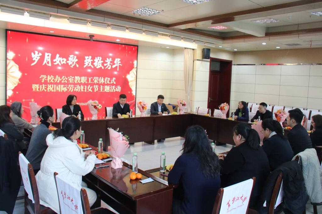 岁月如歌,耕耘无悔;薪火相传,初心不改。在第116个国际劳动妇女节来临之际,为表达对退休教职工数十载辛苦耕耘与无私奉献的敬意和感谢,3月6日,学校办公室在主楼A226举办“岁月如歌、致敬芳华”教职工荣休仪式暨庆祝国际劳动妇女节主题活动。副校长李卓出席活动,在温馨的氛围中,学校办公室全体教职工向荣休教师张鹏致以最诚挚的祝福和美好的祝愿。